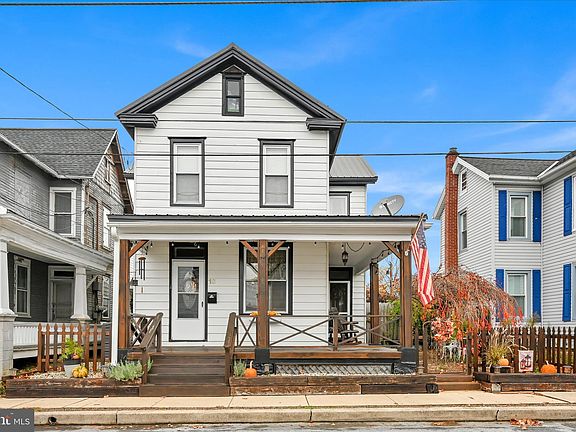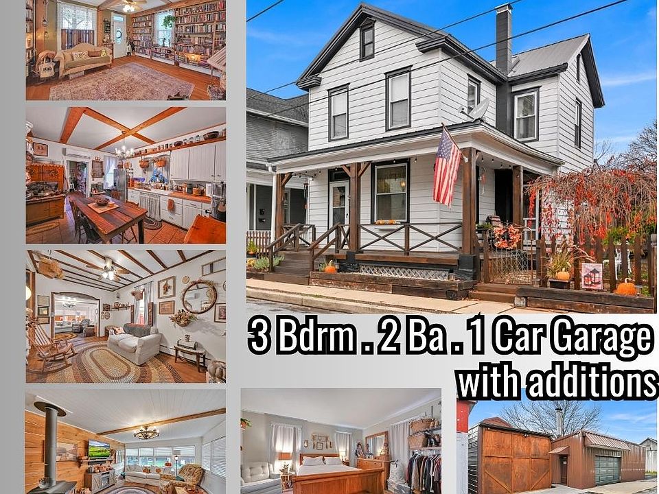 Step onto the charming wrap-around front porch and into a living room that feels straight out of a design magazine, with moody, library-style décor and built-in bookshelves lining the walls. The inviting eat-in kitchen features a vintage-inspired sink, floating shelves, and space for your favorite table—perfect for everyday meals or coffee with friends. Just off the kitchen, the laundry/mudroom offers added cabinetry for storage and a handy 3/4 bath with shower. A sun-filled rear addition with woodstove and windows along two walls is sure to become your favorite room in the house—an ideal spot to read, relax, or entertain. A flexible dining room can also function as an office or playroom. Upstairs you’ll find three comfortable bedrooms, a full bath with soaking tub, and walk-up attic storage. The partial concrete basement adds even more storage options. Outside is a private backyard oasis with an elderberry tree, herbs, and a mature grapevine that produces grapes each year—perfect if you’ve ever dreamed of making your own wine. The gentle sound of a fishpond sets the tone for relaxation. The rustic “summerhouse” with wood exterior and full glass wall/doors gives all the she-shed/creative studio vibes, with an area ready for a future woodstove hook-up. A detached 1-car garage includes two additions: a bar/entertaining area plus a workshop with a lockable room ideal for a safe or secure storage. Thoughtful upgrades include: * New metal roof * Replacement windows * Six mini-split units providing both heating & cooling * New furnace All this, in ELCO Schools and Myerstown Borough, under $300K—within walking distance to DoGoods Tavern, local shops, and the park. This one truly offers the whole package!