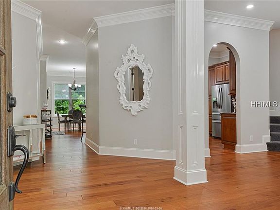 This wonderfully designed home with open floor plan and great bedroom separation, enjoys tremendous privacy on a quiet cul-de-sac. Kitchen with granite counter tops, stainless steel Bosch appliances, and custom cabinets. Attention to quality and detail is evident throughout this home with coffered ceilings, extensive crown molding, and beautiful hardwood floors. Sumptuous master suite with rain head shower, spacious bath and closets. Bonus room can be in-law suite as it is separated into two rooms. Screened porch overlooks a preserve of hardwoods and magnolias. Perfect size and great value. This one won't last long!