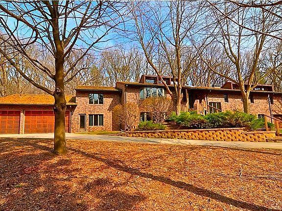Welcome to the treehouse in the woods. When you are in this home it feels like you are perched in the trees! The quaint setting will give you the privacy you crave at the end of your work day. Have a front row seat to the abundant wildlife and natural setting here! This raised ranch style home is all brick so the exterior maintenance is limited. All new carpet, hardwood floors and paint will welcome you. Two woodburning fireplaces, four garage stalls, an enchanting formal dining room and a three season room will impress the most discerning buyer. 1.3 acres of nature, the setting is magical.