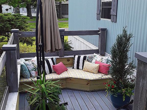 PRICE DROP!!! This completely renovated mobile home is a must-see. Open floor plan, vaulted ceilings, huge kitchen with pantry, custom tile work in bathrooms, laminate wood floors and carpet in bedrooms. Feature wall in living room with built-in TV and fireplace . Great neighborhood, huge yard with two level deck with built-in seating. Can include appliances and custom coordinating furniture(optional), lawn mower and shed. Newly painted roof and gutter shields. This home can be moved.