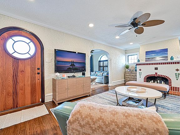 Finally a stunning home is available in the sought after Marven Gardens. This classic Margate home was completely gutted in 2010 and just redone with gorgeous furniture and furnishings which are included in the sale. From the moment you look at the handmade exquisite front door and enter the home you will be wowed by the beauty of the large living room with a fireplace and the dining room with the impressive chandelier. The adjourning enclosed sunroom with it’s arched windows allow the home to be flooded with light. The sunroom is a great space for additional sleeping and has a brand new sofa bed. All beautifully done by a designer with the window treatments matching to the furniture, brings so much charm and perfection. The kitchen stays true to the Mediterranean style of the home. A small bedroom and half bath complete the first floor. Upstairs the oversized master bedroom has its own private deck. 2 additional bedrooms and bath complete the 2nd floor. All this with a huge fenced in yard and enclosed outdoor shower. While most of Marven Gardens driveways are shared there is a one car garage and enough parking in front of the garage for a small to medium sized car. No time to think about this one, hurry and make your appointment before it is sold.
