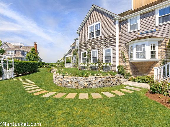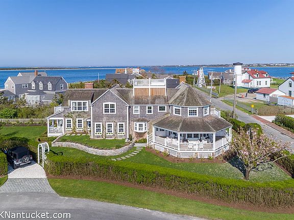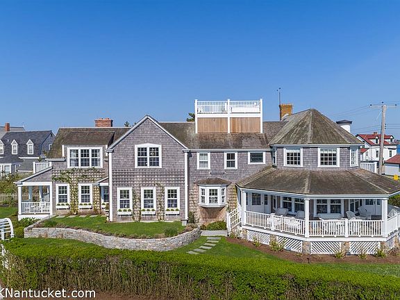 - A, AC, Disp, Ins, Irr, OSh, Floor 1: Enter into the house through the front door near the wrap around porch; hall coat closet and stairway leading to the second floor. To the right is an open dining area with a lovely wall of windows and custom paneling, to the left is the living room with custom paneling and a wood burning fireplace with a custom mantel. To the south is a bright and cozy sun porch with custom woodwork that enjoys harbor views and morning sun. There is also access to Easton Street. To the left of the front door is a wonderful, spacious and bright custom kitchen with all top of the line appliances that includes a Viking Oven and 6 burner gas stove, SubZero refrigerator and a Kitchen Aide dishwasher. A double Farmer’s Sink is set in the middle of plenty of counter space and storage as well as an area that has stool seating. The eat-in kitchen area is light and bright with a built-in window seat that also enjoys views of the garden and Nantucket Sound. To the right is an open bar area with an ice maker and wine refrigerator, plenty of storage and another outdoor access to the front garden area. The new 'sunroom' with windows on three sides is perfection! This room includes a wood burning fireplace, beautiful mantel, built-in window seats with storage below, built- in book shelves and French doors that lead out to a covered porch, the exquisite gardens and expansive water views! To the side of the kitchen is a small laundry area with a Whirlpool Duet washer and dryer and cabinet storage. There is a hall powder room and a first floor bedroom with ensuite bath with tub/shower, custom tiles, paneling and vanity. Second guest room with ensuite bath with tub/shower that has custom details throughout as well!, Floor 2: A beautiful stairway leads to a second floor landing with a built-in window seat. Third guest room with ensuite bath with tub/shower and custom tiles and details; fourth bedroom with wrap around views, built-in desk, window seat and storage, handsome, nautical mahogony wooden framing around the bed and ensuite bath with tub/shower and custom detailing and tiles. A ship’s ladder leads to a clever third level loft area with built -in seating. The large, private Master bedroom wing offers all that could be imagined and desired! To the left is a lovely walk-in closet, open sitting area with a “wall” that includes custom built -in bookshelves and to the right are French doors to a small balcony. The hallway to the master bath has another closet, bath area with double vanity sinks, linen closet and a large tub/shower. This bright and sunny bathroom has custom tiles and details throughout. To the left of the of the bedroom entry is a handsome private office with two built -in desks, dark wood custom paneling, bookshelves, cabinets, pocket doors for privacy and views of Brant Point and Nantucket Sound. The master bed area has vaulted ceilings, custom paneling, wood burning fireplace, hidden tv at the foot of the bed and French doors that lead to the balcony that looks over the mature gardens and yard as well as outstanding water views! On the second floor landing is the easy stairway to the upper level towards the widow’s walk. At the top of the stairs is a galley bar area with a small SubZero refrigerator and a spacious counter area for all the roof top festivities! The custom widow’s walk has a retractable center table, built- in bench seating and plenty of room for a small gathering to enjoy the ever changing boating activity, sunsets, fireworks and as well as panoramic views of Nantucket! .....Property also includes a new custom Sonos sound system throughout the house, beautiful dark stained wood floors, shiplap and custom paneling in every room and custom tile work and vanities, as well as heated floors in every bath.