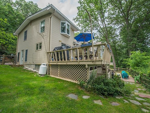 Lakefront views without the lakefront price or taxes. Conveniently located near Sportsman's Marina, this well maintained home boasts nice size rooms, renovations in 2010, professional landscaping.Pre listing septic inspection report available for buyer to review. Minor repairs noted being made by seller. Otherwise, a passing system. Oil tank above ground and located in basement. There are stairs from inside home to basement but current owner carpeted over hatch as she utilizes outdoor entrance. Current owner also had washer and dryer moved upstairs in the closet of the second bedroom. Easily moved back to basement. Wood burning fireplace in living room and pellet stove in den offset oil costs. Fenced in yard. Oversized detached garage. Plenty of parking. This is a great find.