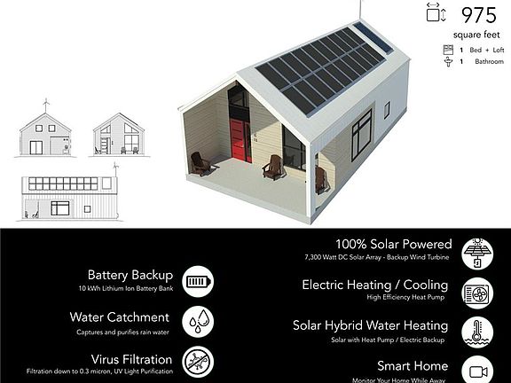 This high-tech, solar powered smart home is fully self sufficient. An oasis in the country, this home still has easy access to shopping, restaurants and coffee shops. 100% solar powered, resilient home with wind turbine, solar battery, and generator backup. Fresh air exchanger with virus filtration. Rainwater catchment and filtration system is a backup to public town water. Full Smart Home system featuring wireless control of front door lock and camera, living, kitchen, and main bedroom lighting, thermostat, and monitoring of energy use, solar production, and solar battery level. Zero maintenance steel siding, triple pane doors and windows, and long lasting metal roofing. High end interior finishes include stainless appliances, quartz counters, and eco-friendly bamboo composite flooring. Large loft space could be additional bedroom, office, rec room, etc. Home is part of a 50 acre sustainable development situated in the heart of Finger Lakes wine country. An easy hour drive from Rochester, Syracuse, and Ithaca and a bikeable 1.5 miles to Downtown Geneva and Seneca Lake.