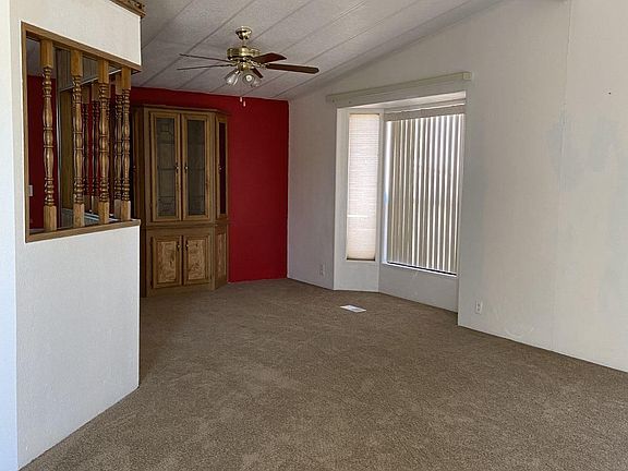This 1987 Kit manufactured home, would be a great opportunity for a young family, or if you might be looking for an investment property.or just looking to settle down. A nice floor plan, with open space vaulted ceiling with new carpet a pellet stove in the living room, to keep the chill off on those cool Page nights, a built in cabinet in the dining area. The kitchen has a built in eat in table, offers great storage. Laundry room located off the kitchen, large enough to have a small chest freezer or upright. A full main bath, two bedrooms and a main suite which has huge walk in closet with built in cabinet. The. main bath features a double vanity, garden tub and a shower with another closet for your towels and linens. The bonus is the attached two car garage! Located in a cul-D-Sac, this home has a huge side yard for a future shop or maybe an above ground pool- garden/yard- you get to decide! Easy to see call me today for financing details and to see this great property, I have a lender for conventional financing, call me for more information