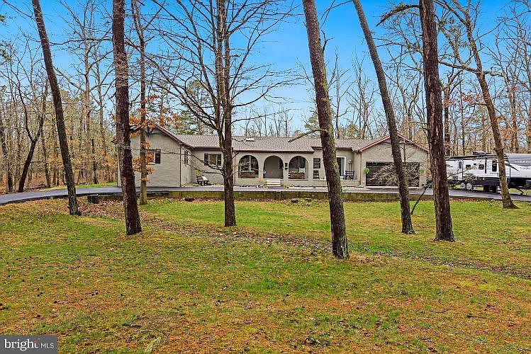 Tabernacle, rancher, acre lot, new roof, new gas heater, water heater, AC. New flooring throughout, new blacktop horseshoe driveway, full basement, 2 car garage. Are you ready to buy it yet? Well here's even more.....You'll enter from the arched front porch through double doors into the foyer with tray ceiling and skylight. To the right is the living room that flows into the dining room with new sliders that go out to the front porch. Straight back from the foyer is the family room with large windows overlooking the back yard. Complete with full stonewall woodburning fireplace with an insert, perfect for added heat source. From there is the fully equipped updated kitchen with an abundance of 42" cabinets, full wall pantry, double wall ovens, glass top cooktop, large center island, stainless appliances (new refrigerator, microwave and dishwasher) and a breakfast area. A half bath is conveniently placed next to the back door. Go down a couple of steps to the large laundry room with garage and basement access. Back to the foyer go left to the primary bedroom with another full stone walled fireplace, walk in closet and full updated skylit bath. Continue down the hall to the other 2 bedrooms and full hall bathroom. All the bedrooms have new carpets and are freshly painted. The rest of the house has new vinyl plank flooring and freshly painted. (Bathrooms are tiled). More good stuff....all new raised panel doors and Anderson windows throughout. When "new" is mentioned everything is no more than 3 1 2 years old. This is a move in ready home waiting for you to unpack and enjoy nature filled living in Tabernacle. Sellers are looking for a closing date on or after 6 22 22.