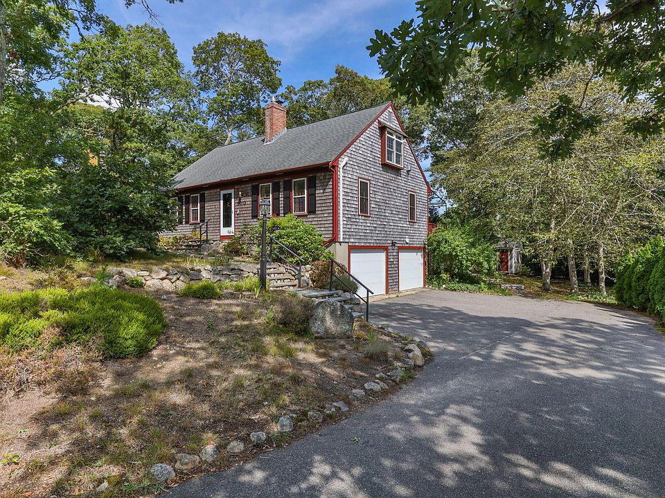 Discover a great location in a quiet neighborhood, convenient to the highway, E. Harwich shopping, Long Pond and Pleasant Bay. This 4-bedroom, 2-full bath home features tastefully updated bathrooms and kitchen. The Kitchen boasts custom cabinets and granite countertops. 2 gas fireplaces create warmth and ambiance in both the living room and primary bedroom.The basement includes a temperature controlled wine cellar, which would make a great office or library and a 2-car garage, currently set up as a game room. Outdoor living is made simple with a deck off the dining room, complete with a retractable awning. Step down to a patio for chilly nights around a firepit. An outdoor shower and shed complete the exterior amenities. This home is Ideal for a seasonal retreat or year-round living. Established rental history.