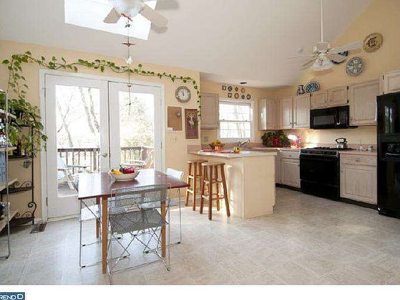 Quiet cul de sac location in heart of Hopewell Borough, just a few blocks from Elementary School, restaurants and shopping. Flexible floorplan,. Plenty of light! Winding walkway to entry foyer, and handsome living room, a few steps up to Kitchen, with separate eating area, breakfast counter, vaulted ceiling, skylight, sliders to deck. Spacious dining room offering plenty of space for the largest family celebrations. Master bedroom with private bath, vaulted ceiling, transom window. Two more twin bedrooms, family bath and loft bonus room. Lower level with bedroom, full bath, great room with fireplace, perfect inlaw suite or guest room. Laundry room conveniently located on lower level, two car side entry garage, basement, central air, fenced yard. Friendly neighborhood which holds many social events.