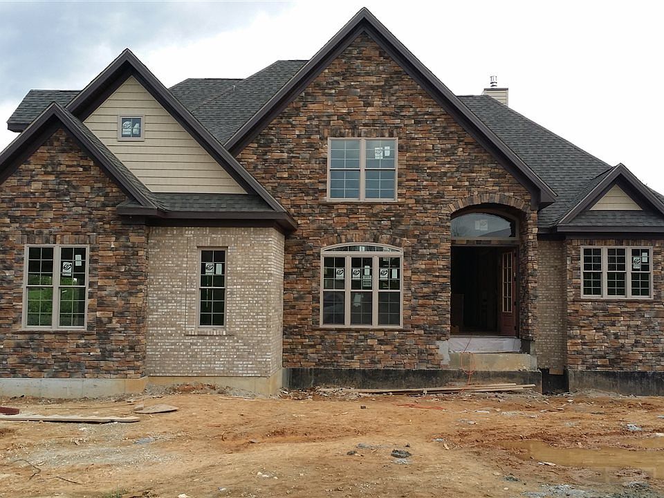 This home come with all the amenities of a custom built home. Out side is all brick and stone. Built-In Cabinets, Shelves, Fireplace,Formal Dining R Room Guest/In-Law Suite, Kitchen Island ,Laundry Room-Main Floor Master Suite-Main Floor. This elegant French Country home features beautiful details and flexible spaces. A covered entry ushers you in through the foyer to the grand family room, which showcases a vaulted ceiling, built-in cabinets, and ample lighting. a fireplace provides a natural focal point. In the master suite, deck access, and a lavish bathroom create a soothing retreat. Also on this level, a private bedroom adjoins a full bath. On the second floor, two bedrooms with large closets share another bath.A loft can become another bedroom, while a bonus room provides even more space. The picture in this listing is similar to finished home.