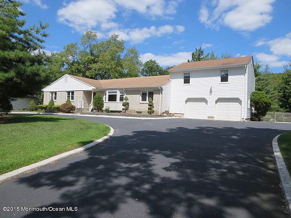 Sprawling 5 bedroom, 3 full bath custom ranch in the heart of Eatontown. Gleaming hardwood floors, open layout, spacious rooms, replacement windows, 2 car garage and full basement. Kitchen features Corian counters, center island, and breakfast knook. Two master suites with full bath and walk-in closet. Deck off family room with awning leads to park-like fenced in yard, circular driveway, brick front, and excellent curb appeal.