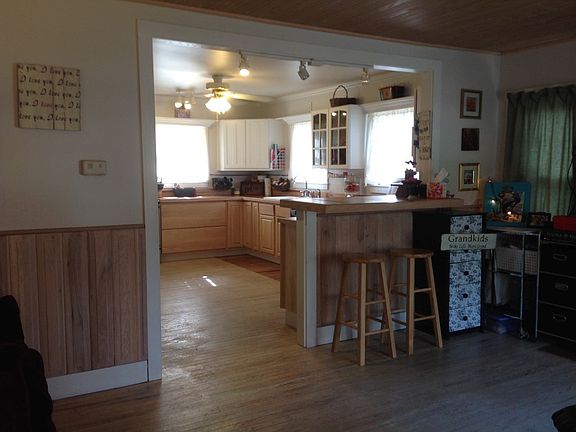 Adorable & Move-In-Condition with lake access on Ridinger Lake! This 2 Bedroom & 2 Full bath home has plenty of space. Living Room & Kitchen are open, entire home is real hardwood floors, the ceilings are wood hardwood panels, really cozy. In the living room is a wood burning fireplace. Large deck on the front of home and extra large concrete patio in back. Home is heated & cooled with economical geothermal! The attic is finished by pull down stairs in hall & is heated/cooled. Detached garage. Pier at wooden arch, only $35 association yearly! Come visit for great fishing & to relax!