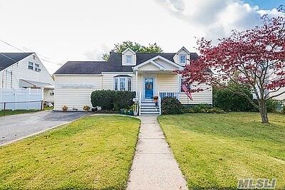 OPEN HOUSE SUNDAY 1-3pm Nov 1. This Beautifully Maintained Expanded Cape is nestled in the Prestigious Bethpage Community. This 4 Bedroom, 2 Full Baths Full of Natural Light Home has Cathedral Ceilings, Hardwood Floors, Fireplace, Bumped out kitchen with Skylight and Patio Slider Door. There are Two Bedrooms and Full Bath on the Main Level with Two More Bedrooms and a Full Bath on the Second Floor. The Basement has the Utility, Laundry, Storage and Finished Floors in the Playroom. You are Greeted with a 11x 5 Front Wood Porch and an Entrance Open Floor Plan Foyer. There is Plenty of Entertainment Room Inside with Open Concept and Out with Manicured Landscape and Patio Pavers. Heating System, Roof and Siding recently updated. This home is Mid Block and a couple of blocks from the Bethpage Shopping Village and LIRR Station. Bethpage SD #21.