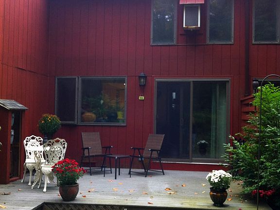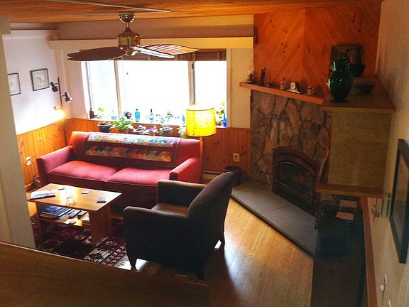 This Brookside condo has had a few facelifts over the years and owners have enhanced the earlier upgrades even more including modern maple kitchen cabinets and a granite counter top, tile and and bamboo floors. Electric or energy efficient Rennaii gas heater installed and converted fireplace has a gas furnace insert that gives the ambiance of the fireplace but provides furnace quality heat. New heat pump hot water heater. The upstairs has vaulted ceilings, skylights, and paddle fans. The full bath, with access off the master bedroom, includes a combination whirlpool tub and steam shower. There is small finished loft area with a built-in bed, bookshelves & skylight. This is an ideal hideaway for children or is just a great storage area. The garage has a workshop area and separate laundry room. Conveniently located next to Living Memorial Park and just 1.5 miles from downtown Brattleboro.