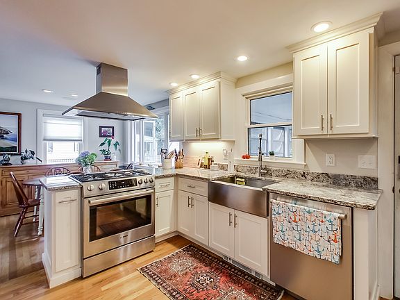 Picture perfect home located in a desired neighborhood walking distance to the Commuter Rail and local restaurants. Enter the home and into an open concept living/dining room with a cozy fireplace and lots of windows. Off the dining room, a custom built kitchen, great for entertaining along with a 3 season sun room that leads to a backyard oasis, complete with a professionally designed patio/landscaping, hot tub, raised gardens, fire pit, fruit trees and views of Crystal Lake. Downstairs you will find a partially finished basement with custom barn board walls.