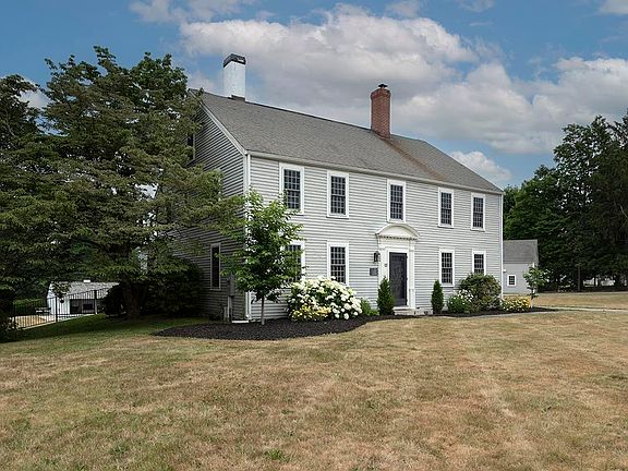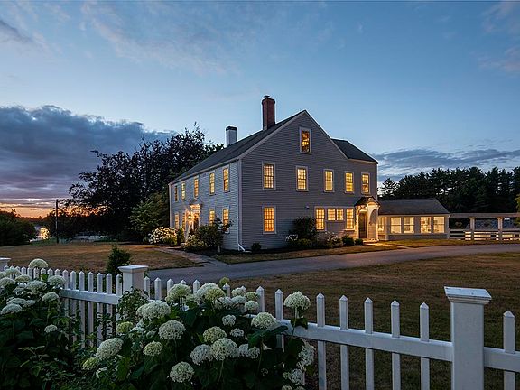 Just listed! The Governor Meshech Weare House-Listed on the National Register of Historic Places - a very rare opportunity to own a piece of New Hampshire and Revolutionary War history in this beautifully maintained nine room, four bedroom, four bathroom circa 1738 home sited on three lushly landscaped acres perfectly located opposite the Hampton Falls Common, the Lincoln Akerman Elementary/Middle School, the US Post office and the corner, general store. During the War for Independence, George Washington visited this house in 1775 as well as James Monroe in 1817 and Lafayette in 1824. Imagine the history and the conversations had within the walls of this stunning estate. Interior detailing in many of the rooms including the dining, primary suite, grand foyer and family room have been left largely untouched. Rich paneled walls of the formal living room reveal a secret bar behind the paneled walls. Five fireplaces including the wood burning fireplace in the pool house. Updates include a new gunite pool, new custom kitchen with granite/leathered granite counters and new appliances including a gas, Aga stove. 2021 sunroom remodel with new windows, original bluestone floors, beamed ceilings, gas fireplace and air conditioning opens up to the paver patio and hot tub area that overlooks the pool and pool house. Updated systems, roof, wiring and new windows throughout. Detached barn with room for four cars and loft storage.840sf 2BR guest apt.
