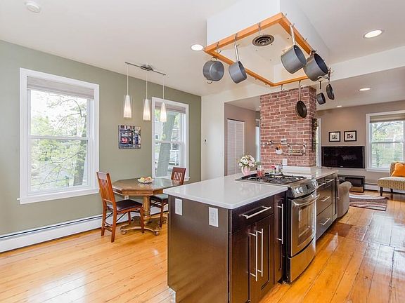 Sunny two-bedroom plus study condo in the sought-after Cambridge-Riverside neighborhood! (The sellers have often used the study as a third bedroom.) This home has an open living room/dining room/kitchen floor plan. Beautiful hardwood floors, high ceilings and exposed brick. Ample closets and storage space. Large eat-in kitchen with stainless steel appliances and abundant quartz, countertop space. Recently updated kitchen and bath. In-unit washer/dryer. Storage in basement. The association recently replaced the roof, re-sided the exterior and poured a concrete floor in the basement. Strong condo association and low condo fees. One parking spot is included. Great location, less than a half mile to Harvard Square, Charles River, Memorial Drive, MLK Putnam Avenue Upper School and the Public Library!