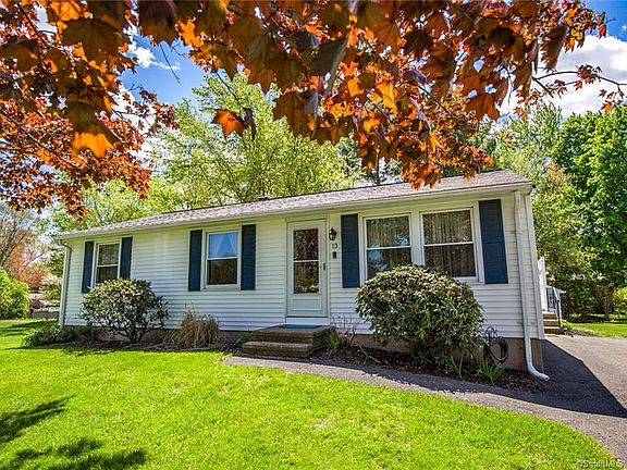Sought after location for this lovely vinyl sided ranch on a picturesque- just shy of an acre, level lot. Super desirable one floor living with a spacious eat in kitchen, a sun filled living room, three generous sized bedrooms and a full remodeled bath - absolutely perfect for the first time buyer or those looking to downsize. There is a partially finished basement that can be used as office space, a playroom or workout area. The enormous deck just off the kitchen overlooks the private park like yard and is ready for summer entertaining This well maintained, one owner home is tucked away in a quiet neighborhood yet close to shopping, restaurants and easy highway access for commuting.