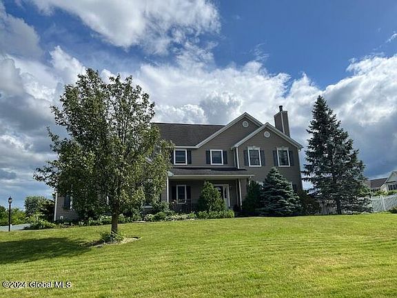 Opportunity awaits as this beautiful 4 bedroom 2.5 bath home with an inground pool and North Colonie schools hits the market! Features include an open floor plan w cozy family room w gas stove that opens to a huge eat in kitchen w island and ceramic tile floor and slider to yard! Gorgeous formal living room w fireplace, sharp sun filled formal dining room w crown molding and an abundance of windows, mud room w first floor laundry, inviting entry, large first floor study or bonus room, gleaming hardwood floors throughout 1st floor, central air! Large primary bedroom suite w primary bath and walk in closet, partially finished large basement, 2 car side load garage! Backyard paradise w pool and patio w retractable awning and gas grill hookup! Fantastic location end of cul-de- sac! A must see