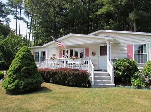 Very rare "Woodlands" model containing 1,848 square feet of living space. This has a great setting backing up to woods. Large front porch overlooking meticulous maintained grounds. Nice kitchen with oak cabinets. Utility/ mud room has washer, dryer, furnace and hot water tank. Lovely diningroom with sliders opening to sunsetter awnining covered back deck. Spacious and elegant livingroom for family entertaining. Master bedroom has excessive walk in closet. Updated include carpeting, Bryant 90 Plus furnace, a/c unit, thermal windows, roof 1 year, large gambrel style storage shed. Professionally landscaped grounds. This unit has it all. Can not close til end of September