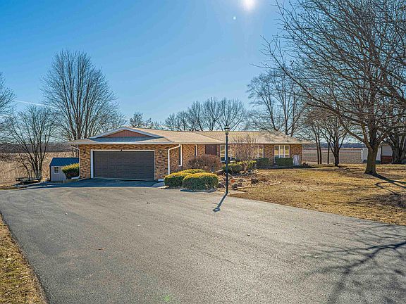 Astonishing 4 bedroom, 3 full bath brick/wood/aluminum sided walk-out ranch style home situated on a rolling 1.00 acre of ground within WLB school district -- rural views out back -- golf course views out front! Main floor of home features a tiled 15X17 foyer, expansive sunken living room, tiled formal dining room, equipped tiled kitchen with breakfast bar, breakfast nook, granite countertops, and neat rounded ceilings, huge laundry room/pantry area, sprawling rear sunroom/family room with a supplemental wall HVAC unit and a rear exterior access point, updated full hall tiled bath, and three nice sized bedrooms (one leads right out to upper 2+ car 23X22 attached garage -- one does NOT have a window). The rear primary suite is host to great closet space in addition to a beautifully updated full adjacent tiled bath. The finished walk-out lower level features a den/office/rec room area with an exterior access point, fourth bedroom, tiled kitchenette, third full bath, mechanicals, and access to an additional lower 29X22 attached garage! Property also features a newer blacktop driveway/front epoxy sidewalk, Generac generator, Andersen windows (some newer vinyl), architectural roof, commercial grade gutters, radon mitigation system, whole house attic fan, efficient hot water heat (plus central air conditioning), rear storage shed, expansive second story deck, lower level concrete patio, and all appliances to remain. Private well/septic system on premises. Truly a choice property!