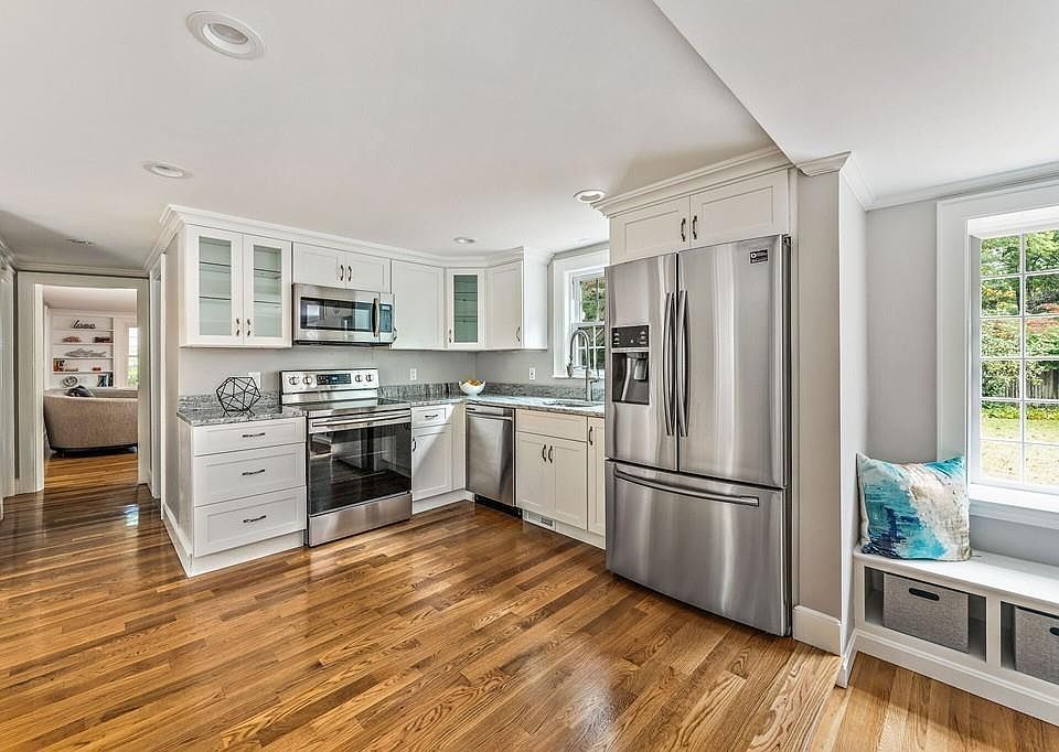 - Kit Dscrp: Flooring - Hardwood, Countertops - Stone/Granite/Solid, Stainless Steel Appliances, Recessed Lighting, Remodeled, Window(s) - Bay/Bow/Box, Cable Hookup