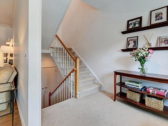 Location, Location, Location! Only 2 blocks to train to NYC, convenient access to 287 and 4 blocks to vibrant center of Morristown! This unique Victorian-style end-unit townhome in Franklin Corners (currently only one available in this floor plan) has a bright and sunny exposure. Home features marble entrance, dentil molding, French doors, and elegant built-ins. Open & airy floor plan; dining room w/vaulted ceiling. The spacious kitchen has all stainless steel appliances and a laundry closet. On this level is a bedroom with ensuite full bath. Upstairs level has 2 additional bedrooms with walk-in closets, 2nd full bath and loft sitting area w/custom floor to ceiling shelving & cabinets. French doors lead to in-home office (or convenient opportunity for additional bedroom).