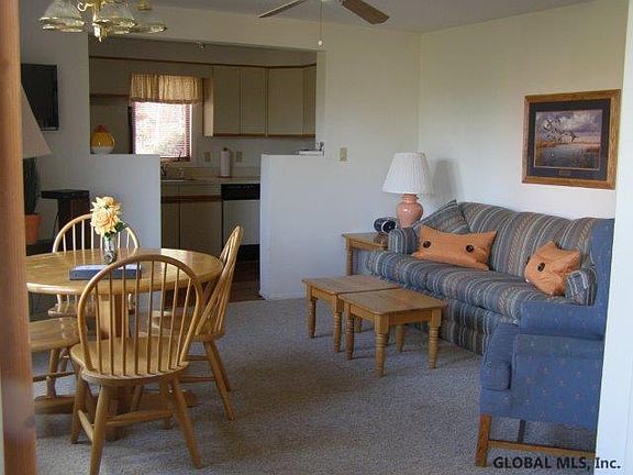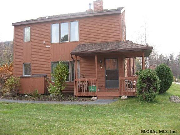 13E- This corner unit is located just a short walk to the pool. It has a decent view of some trails on Gore Mountain. Flooring, furniture and paint are in good shape.