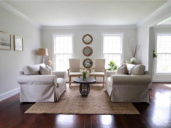 This GORGEOUS Peter Smith, custom-built Saltbox colonial is a rare gem in perfect condition. Exterior was given a brand new look with white paint, all new craftsman-style trim and custom made solid wood garage doors. Decorated and designed with Restoration Hardware/Pottery Barn finishes throughout, creating a beautiful "modern farmhouse" vibe. Antique barn beams (from Chester, CT) adorn the family room ceilings & mantle, with a field stone wall fireplace. Open the top of the line Marvin slider to the deck overlooking the backyard view of the beautiful & private wooded landscape. The newly remodeled kitchen boasts clean lines with its slate counter tops, Carrara marble subway back splash, pot filler faucet and beautiful crisp, white Shaker-style cabinetry. The "eat-in"kitchen area is nestled within 4 large windows overlooking the charming landscaped side yard. The living and dining rooms open to each other for great entertaining. First-floor bedroom perfect for guests or in-law with nearby full bath. Upstairs, 4 bedrooms are carefully laid out with a great office and full staircase to a large second family room/playroom. Enter the ensuite master bedroom to see what the literal definition of #closetgoals is in this huge, custom built "DREAM CLOSET," complete with a marble topped 6-drawer island! Located 8 minutes from downtown; cul-de-sac neighborhood with hiking trails, fishing and a huge sense of community! Truly a one-of-a-kind house!