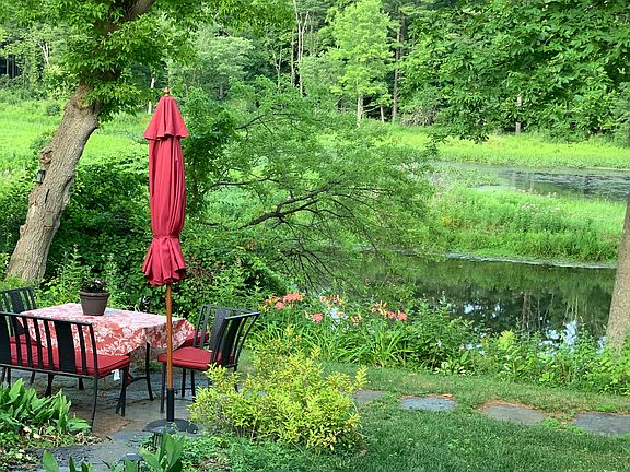 Renovated home with gorgeous river views and terraced landscaping to stone patio at the water's edge. Sunny southern exposure and enclosed year-round porch. Brand new high-tech, pellet stove/fire place in living room for energy-efficient heat. New kitchen with stainless steel appliances. Large dining room with great light and refinished wood floors. Central air-conditioning. Second floor has three bedrooms. There's public sewer and water and an attached one-car garage.