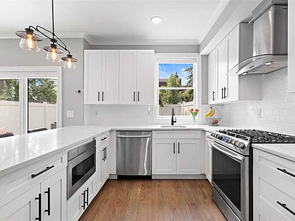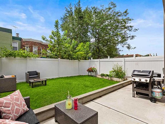 Private Yard. 2019 construction. Bright, sleek, and modern come together to form this very unique duplex (both floors off street) condominium in Jersey City Heights! Massive 3 bedroom, 2 1/2 bathroom home with chefs kitchen offers a private entrance, direct access to your two-story garage, and your own private backyard oasis with green grass, an herb garden, and a BBQ area. This home is accented with high-end finishes like custom moldings, a Samsung smart refrigerator, stainless steel appliances, shaker style cabinets with tons of storage, and quartz countertops. The 1467 square-ft condo includes an open floor plan, perfect for entertaining, with large, sunny bedrooms with custom California Closets to maximize storage. The master bedroom is huge, easily fits a king-sized bed, and features a large walk-in closet. Enjoy the modern comforts of a smart Nest thermostat, hardwood floors, central heat and air, in-unit washer & dryer, and a video intercom system. It also includes private pantry storage, a 4-year tax abatement, double soundproof insulation, central vac system, and a unique building layout that provides a very quiet and tranquil space. Conveniently located near 9th Street light rail station with access to Hoboken, downtown Jersey City, Path to NYC, and also near buses that run 24hr to Port Authority and Midtown Manhattan. If that's not enough, this condo is located in the heart of Jersey City Heights which offers shopping, restaurants, and is just one block from Washington Park with access to baseball, basketball, tennis, volleyball, an exercise center, and a dog park. Everything you would want in a home! The duplex layout of the house is very different from other condos in the Heights - it feels more like a house and less like an apartment. We are also not directly underneath our upstairs neighbor like most 1st floor units are, so its very quiet. Since there is no street frontage, condo is very quiet and you do not hear the city/traffic noise. Private entrance to unit. Long hallways, big spacious staircase. Our backyard has part cement/part grass, which is ideal for gardening/playing with our dog but still able to keep backyard furniture and grill off the grass. The master bedroom/bathroom/closet is so spacious and gets so much light