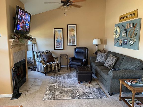 Fantastic Table Rock Lake getaway in Holiday Island. Outstanding condo with lake views, walking distance from the marina. 3 beds, two with built-in bunk beds - sleeps a total of 10. Redecorated with new paint. New fixtures replacing the dated brass. New roof in 2016 and wood-burning fireplace for those cold nights. Stacking W/D included. Lots of storage. Property comes fully furnished..move-in ready, just bring your clothes! Only 45 minutes from Rogers/Bentonville and 5 miles from historic Eureka Springs.