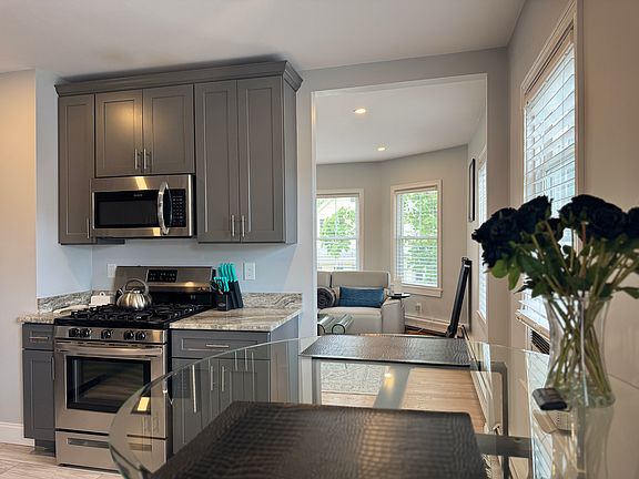 This newly renovated 2 bedroom 1 bathroom apartment has so much to offer! This unit features stainless steel appliances, granite countertops, gleaming hardwoods, parking, storage, washer and dryer, and a custom built in closet. High end finishes are seen throughout this spacious and bright apartment. Conveniently located to all amenities, highways, shopping, restaurants and Garden City Center! Garage space can be included for an additional $100/month. Tenant responsible for gas, wifi, and electric. No pets please. Available for occupancy starting on 9/15.