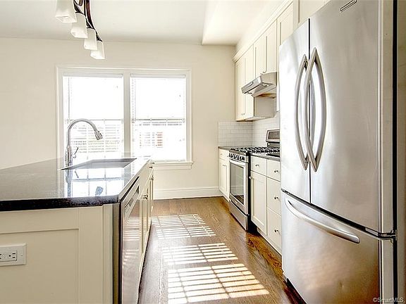 Location, Location, Location! With NYC at your fingertips from Darien train station, only a block away from this high end flat is where you'll want to be and where the fun won't end! Stunning, elegant and bright are among the few words to describe this newer modern living. From the front door of the unit you will notice its pristine dark hardwood floors and big windows throughout, engulfing this airy unit with natural light. But don't let that distract you from the open floor plan, vaulted ceilings in the living dining kitchen area with stainless steel appliances, subway tile backsplash, granite throughout the kitchen with a breakfast bar completes its modern-living flat. The walk-in closet completes this very spacious master bedroom.Find yourself living right in the center of Darien's beautiful downtown from you very own private balcony. Downtown offers a vast amount of shops, restaurants, coffee shops, easy access to I95 and many more amenities, perfect place to call home!