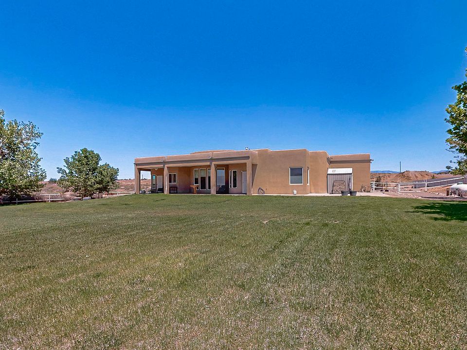 Reduced & Ready for you! Luxury awaits in the heart of Los Lunas! This stunning 2,422 sq. ft. home offers a unique blend of quality construction and Southwest style. The open and inviting floor plan features 10-12 foot ceilings and abundant natural light, creating a highly functional space perfect for entertaining. The entertainer's kitchen flows seamlessly to the oversized covered back porch, allowing you to enjoy your private oasis in the backyard while taking in the breathtaking sunsets in this idyllic country setting. This home also boasts an oversized master suite with dual vanities, a jetted garden tub, a separate shower, and spacious walk-in closets. You'll find all the modern amenities that the most discerning buyers can appreciate, all situated on a beautiful one-acre lot