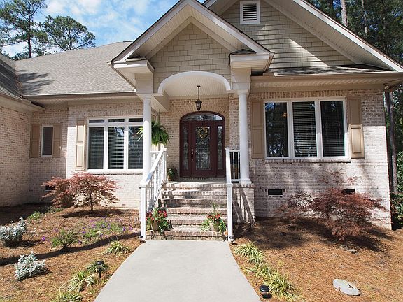 Located in the gated community of Pinewild you will find this beautiful brick home built by Terry Michaels that has been nicely maintained. With hardwood floors through out the living area and kitchen, the kitchen is equipped with custom wood cabinetry with slide out shelving ,granite counter tops,triple crown molding and a double wall oven.The living room has a coffered ceiling and a double sided fireplace shared with the Carolina room.The master features walk-in closets and the bath has custom cabinetry w/ cultured marble tops, large vanity and a whirlpool.The yard is beautifully landscaped and has an irrigation system and landscape lighting. 220volt electric car charging plug in the garage. 2020 new cooktop & refrigerator.2019 new garbage disposal & ultra quiet dishwasher.