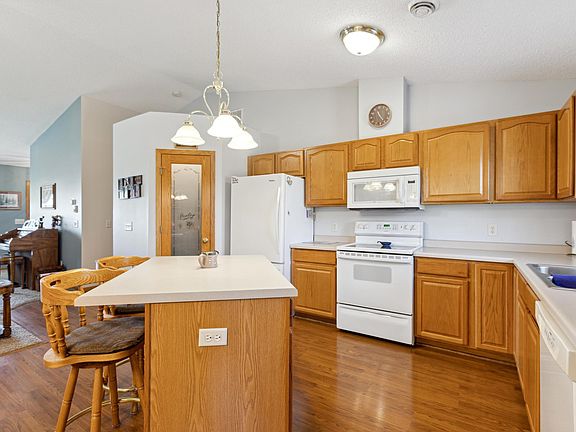 Welcome home to your charming side-by-side townhome. Boasting with natural light this main floor living home is perfect for those seeking comfort without the hassle of stairs. With 2 spacious bedrooms and 1.5 bathrooms, the open layout is both bright and inviting. The heart of the home features a vaulted ceiling and a cozy gas-burning fireplace, ideal for Minnesota's chilly evenings. The kitchen shines with its walk-in pantry, center island complete with a breakfast bar. Enter outside to enjoy the convenience of a concrete driveway leading to a finished oversized 2-car garage. The concrete patio is perfect for relaxing or entertaining. The newer roof adds peace of mind, while the no-stress living is complemented by the surrounding walking trail for a short walk to restaurants and downtown. With easy access to Hwy 7, your commute is sure to be a breeze. Embrace easy living at 13 Hana Street—your perfect Lester Prairie home.