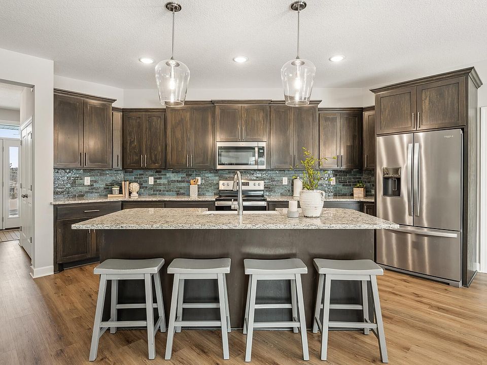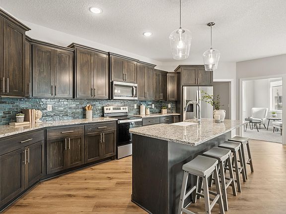 This stunning new construction home, located in a convenient Hopkins neighborhood close to HWY 169 and Excelsior Blvd, offers modern luxury and comfort. The fenced-in yard provides privacy and security, complemented by a maintenance-free deck, perfect for outdoor relaxation. An in-ground sprinkler system keeps the landscaping lush, while an electric charger in the garage adds convenience for EV owners. Inside, the spacious kitchen flows seamlessly into the living room, highlighted by custom built-ins that frame the stunning gas fireplace. The kitchen boasts a massive center island, sleek granite countertops, and stainless steel appliances. A dedicated beverage station includes a sink, water hook-up, and wine fridge. The primary bedroom boasts a private full bathroom with a deep soaker tub. Additional highlights include a charming covered front porch, abundant storage throughout, and a beautifully finished basement that offers a peaceful retreat. This home seamlessly combines modern features with timeless appeal, all within a highly sought-after location.