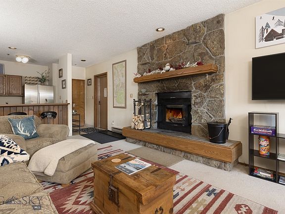 Inside, the inviting living space features a cozy wood-burning fireplace, ideal for unwinding after a day on the slopes, and a bright sunroom where you can take in the awe-inspiring scenery while planning your next Montana adventure. An oversized storage unit with owner lock-off provides ample space for all your mountain gear, and covered underground parking keeps your vehicle secure and snow-free.