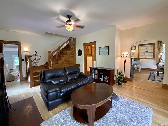 Very special home in a spectacular location! 13 Herber Ave Delmar is the perfect house to call HOME! Beautiful natural woodwork with built-ins in the living room & kitchen. Bright sunroom off the living room and easy access to the large deck overlooking the double lot. The 1st floor bedroom or family room/craft room featuring a "tea kitchen" and full bath with shower stall, private back entrance. Great for in laws, nanny or home office! Upstairs are 4 good size bedrooms and a large full bath. Hardwood floors throughout the house, brick wood burning fireplace, beautiful built ins. Out the backyard is your private entrance to the Albany County rail trail. Special financing incentives available on this property from SIRVA Mortgage.