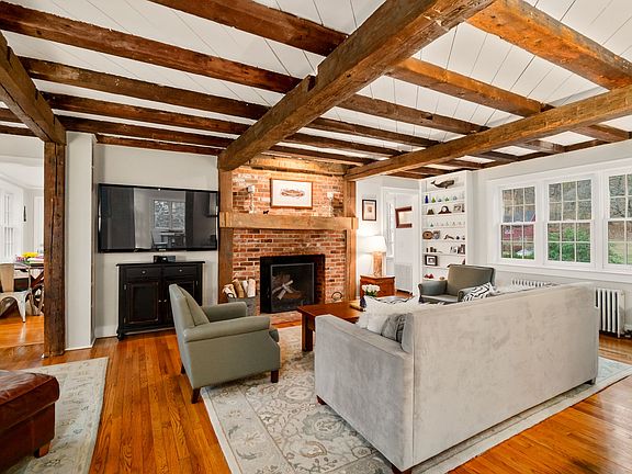 Adorned by picturesque stone walls and on almost 3 acres of expansive property, sits this lovely, sun drenched 1930's storybook, farmhouse Cape. Original hand hewn chestnut beams believed to have been salvaged from the pre existing Coley Farmstead, provide the charm of yesteryear and blend seamlessly with many recent upgrades to suit today's lifestyle, featuring a remodeled kitchen with quartz countertops and stainless steel appliances, renovated bathrooms and central air. Special highlights include gleaming hardwood floors, a large brick fireplace, flexible floor plan, and workshop, while outdoors, a handsome barn provides both the quintessential Connecticut backdrop and the practicality of extra storage space. An in-ground swimming pool, vegetable garden and fire pit further enhance the charm of this truly special home, conveniently located in the heart of lower Weston, just minutes from Weston/Westport amenities...a very special property that feels like a vacation retreat, while offering all the comforts of year round living.