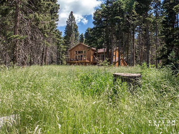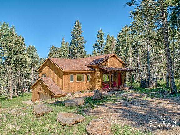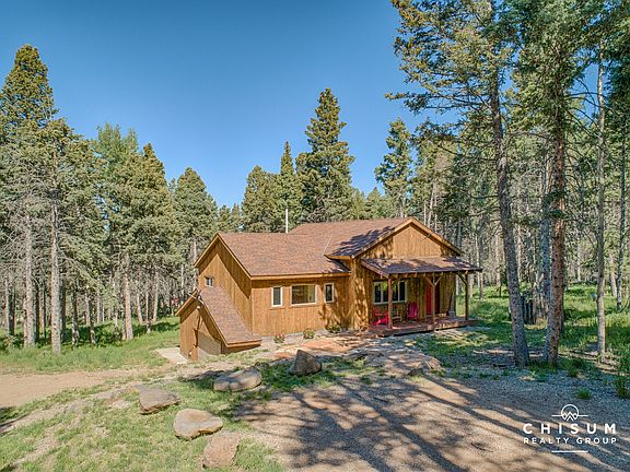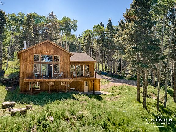 High above the Moreno Valley is 13 High Needle Overlook, one of the highest residencies in the state of New Mexico! This home sits on 1.06 private acres with ski access to Angel Fire Resort's ski mountain through a bordering greenbelt. The house has a beautiful kitchen with stainless steel appliances, custom concrete countertops, and red cabinets which provides a nice accent. The living room has a wood burning fireplace with wood storage, a window wall, and access to a deck that is perfect for enjoying the sunsets that gave Angel Fire its name. Rustic large plank hardwood floors run the entire great room and the tall ceilings creates a spacious room to gather with the family. The master bedroom is located on the south end of the home with a private patio, large walk-in closet, and laundry space. The master bathroom is a dream bath with dual vanities, tile shower, and a soaking tub under a large picture window! Downstairs, you will find a guest suite with a walk-through closet and an ensuite bath. Another guest bedroom, full bathroom, mud room and work out area are also on the lower level. Additionally, there is a flex space that could be used as an office or a separate laundry room. This 2013 built home also has an attached two car garage, comes mostly furnished and is ready for you to be its second owner!