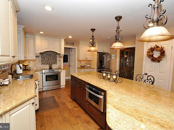 You'll be surprised!! to find this fully Custom Cabinet Gallery Gourmet Kitchen, including newer 42" custom cabinets, full granite, huge island and all the right touches. This expanded two story brick front Jamestown colonial hosts, a newer roof, updated high efficiency gas heating system, updated baths, newer wider planked hardwood flooring, full finished basement, oversized side entry garage with storage and much more. As you enter through the front door into this huge foyer you'll updated hard wood flooring, chair, crown moldings and turned staircase. This center hall hosts a formal living room and dining room located on either side of the foyer which create a nice even flow. This model boosts a large eating area with access to the sliders leading to the pato . The nicely sized family room includes a full working brick fireplace and log carrier and custom builtins. This room also includes a full butler's pantry. Let's not overlook the additional room on the main level with a huge vaulted ceiling sunroom with French doors that leads to our patio full of EP henry pavers and sitting areas and fire pit overlooking a open rear year backing to hardwoods. Upstairs you will find a luxurious master suite complete with a walk in closets. This leads to a master bathroom, large tiled shower, ceramic tile flooring, Jacuzzi tub and a double sink vanity with solid counters. The upper level also includes three more generously sized bedrooms. The hall bathroom is complete with a double sink with solid counter tops. Lastly, the full finished basement includes a possible in-law suite or guest bedroom with it's own gym. Also, find a full bar, game room and sitting area waiting to entertain guests.