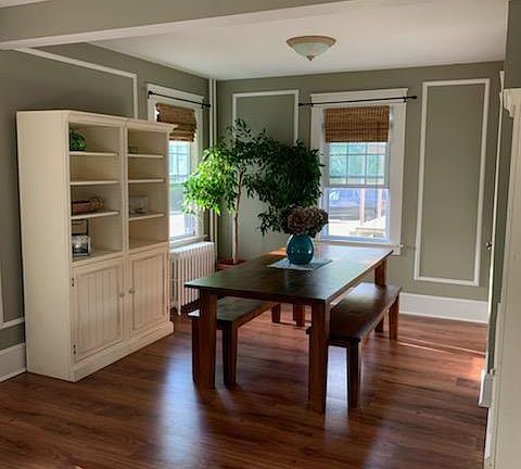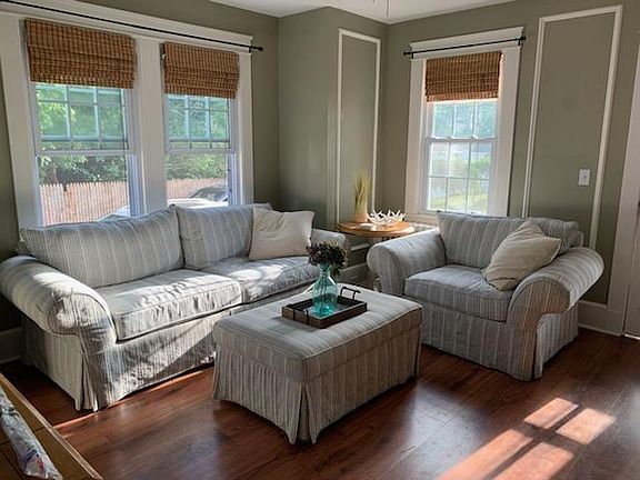 This charming 2-bedroom house has everything you need for Newport living... The cottage is within driving distance to all of Newport's popular restaurants, bars, shops, and vineyards. Five minute drive to the base and bridge. An ideal location for exploring Newport and Aquidneck Island. The entry way leads to an open living room and dining area. Full bath is on the main level with a half bath upstairs off the 2 bedrooms. Open kitchen with breakfast nook. Mud room off the back leads to the fenced in yard and grill. Two good sized bedrooms upstairs with the half bath. Finished basement has an additional living area with a futon and couch. Laundry room in basement as well. Monthly rent includes utilities. House is fully furnished.