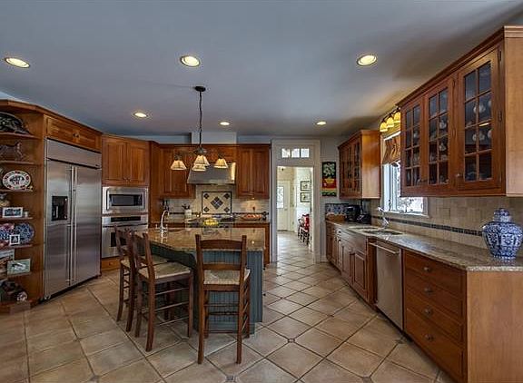 Classic Elegance off Orchard Hill. Beautifully maintained, bright & sunny with generously scaled rms and on point decor. This 15-year young center hall colonial is fortunately sited on a level shy 2 acres with wonderful curb appeal and delivers both interior and exterior perfection. Exquisite architectural details, custom moldings, large windows, beautiful hardwood floors, 5 BR plus upstairs office, 4 1/2 BA plus an add'l 1,400 sf in lower level. High ceilings, step-down living rm w/marble fpl, spectacular fam rm w/built-ins, floor to ceiling doors w/transom windows overlooking the deck and sprawling yard, expansive formal dining rm, fabulous Rutt chef's kitchen with center island & high-end appliances & breakfast nook, back staircase with mudroom and sensational laundry room. An over sized Master suite w/2 walk-ins & MBA. Exciting lower level offers space for recreation + nanny/in-law potential. Moments to train, schools, shopping & highways. An ideal home for refined country living!