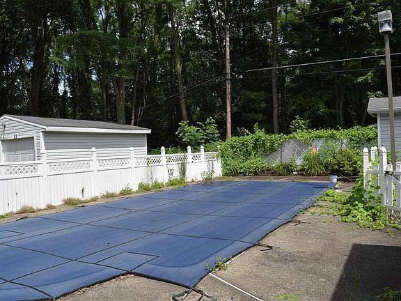 Unique floor plan in this 3 BR, 2 full BA split level home. Double lot...sale includes 9 Hillview Rd as well. In-ground pool~gunite w/ newer bullnose, vinyl fence, 2 car attached garage, shed, garage-sized outbuilding, & flowering trees..lilacs, Rose of Sharon & more. Sliding doors to deck & patio areas, vaulted ceiling in LR/DR area & in den also w/ recessed lighting, solid oak cabinets in kitchen, ceramic tile baths, double pane windows. All appliances included. Lots of potential with a little TLC.