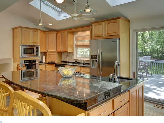 Sophistication, elegance and style come together beautifully in this gracious 4/5 bedroom, 3 full bath home located on a premium lot. The floor plan was modified to create an open floor plan concept with skylights. They removed a wall allowing for them to expand the kitchen while adding a significant center island (room for 4 to 6), a vaulted ceiling with skylights and a greenhouse window. This remodeled space includes upgraded cabinets, granite counters, two sink areas, back splash, stainless steel appliances, pendant and recessed lighting. This flows seamlessly into the Living Room with a large bay window allowing for plenty of sunlight. There are sliders off to a large deck area. The beautiful Family Room has another set of sliders that lead to a welcoming patio area. The 5th bed/office/library is convenient for guests, au-pairs, in laws or working from home. There is a remodeled full bath right off of this room. There are 4 more generous sized bedrooms and 2 full remodeled baths that complete this home. The large Master has an ensuite bath and plenty of closet space. The basement is perfect for a gym or playroom and has the added bonus of lots of storage space. The landscaping is exceptional. The entire home has been freshly painted. The park like backyard is perfect for entertaining with family and friends. Convenient or NYC, Newly widened turnpike, major highways, shopping, parks and restaurants in the historic town of Princeton. Excellent schools-East Windsor makes the list and ranks 9 out of 15 schools with the highest AP performance. The 2 car attached garage is extra large it is extended so that it is possible to create another room in the extra space. There is also a circular driveway. Here's your chance to live in one of East Windsor's most sought after neighborhoods Please Note: 8 Hawthorne a couple of doors down just SOLD for $390,000 it's 1991