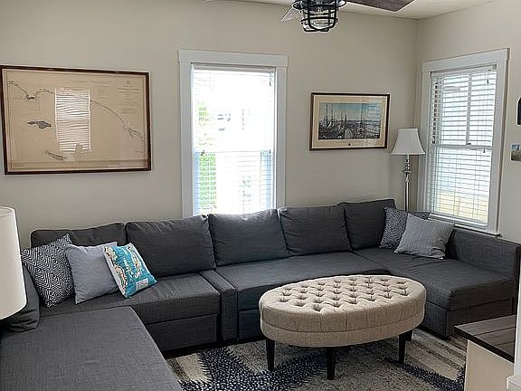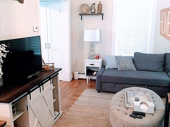 Beautifully updated home with 3 bedrooms and 1.5 baths. Excellent Location! One mile to Naval Base, 1/2 mile walk to bustling downtown Newport, 1/2 mile walk to the Bay. This home includes a fenced-in backyard complete with a patio, outdoor furniture, and grill for a relaxing evening cookout. The front sunroom is a wonderful spot to enjoy a cup of coffee and catch up on your favorite shows. Original hardwood floors are throughout the entire house and tasteful decorations and comfortable furniture will help you feel right at home. The stocked kitchen, bright dining room, and wet-bar make for easy entertaining. Enjoy ample shelving in the basement for all your extras. This home has everything you need and much more! HOME FEATURES: * 3 bedroom/1.5 bath + Private fenced in backyard ** Fully Furnished + grill, patio furniture, & sunroom furniture * Ceiling fans with remotes in every room * Master Window AC unit included * Fireplace Style space heater for use of sunroom year-round * TV in Living Room + Mounted TV in Sunroom - both with Roku * Yard maintenance included * New Kitchen Appliances * Keyless Front door Entry * Washer/Dryer in unit + utility sink in large basement * Easy Street Parking + nearby parks * 1 Mile to Naval Base, 1/2 mile walk to downtown, 1/2 mile walk to Broadway (restaurants/bars)