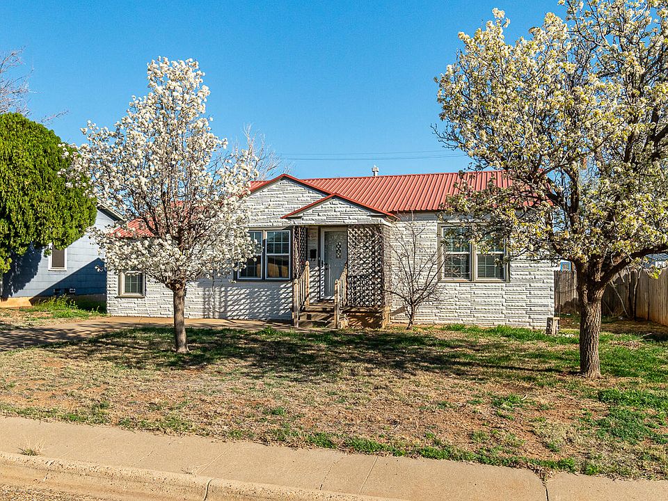 Cute 3BR 1BA house with lots of updates is Move in Ready and Up For Sale! This home has curb appeal and newer windows, a nice sized living room that flows into the big kitchen with an eat in area, large master, dedicated utility room and updated walk-in shower in the bathroom. Central Heat and Air, a nice metal roof, large fenced in backyard with an elevated patio and established trees are ready for your BBQ. Come and see this little house for yourself!