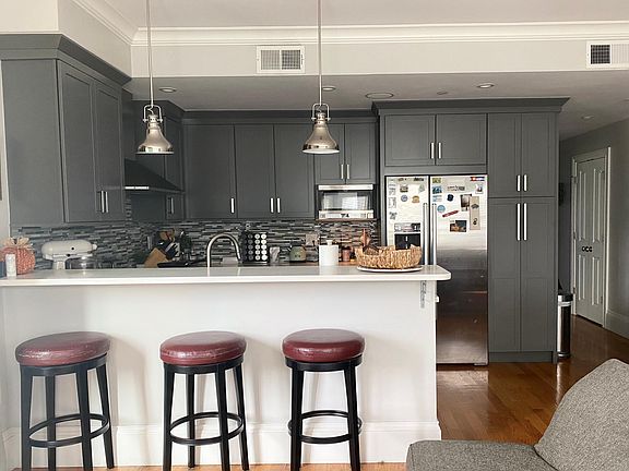 ** NO REALTOR FEE ; FLEXIBLE MOVE-IN DATE ** Beautiful penthouse condo in the Polish Triangle! This two-bed two-bath unit features gleaming hardwood floors, in-unit laundry room, and plenty of open space to set up a work-from-home area. The open concept kitchen and living room area welcomes ample sunlight and is complete with a gas fireplace. The kitchen features high-end stainless steel appliances, quartz countertops with peninsula, and generous cabinet/storage space. The master suite includes two walk-in closets, an oversized shower, and double vanities. The spacious guest bedroom also features two large closets and plenty of room for an exercise or office space. Two floors of living space with a head house leading out to a private roof deck with included gas grill. Head house features a wet bar, wine rack & cabinets, and storage closet. Two additional private balconies, off-street parking, and private basement storage complete this amazing home. Steps to South Bay shops & restaurants and Dorchester Brewing Company. Short walk to Southie, South End, and M Street beach, as well as Andrew Square & JFK stops. Easy access to 93 and 90, on quiet one-way street. Pets negotiable.