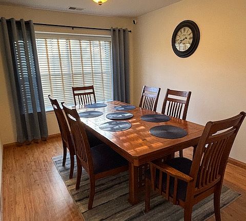 Lovely end unit townhouse in desirable Wyndham Place. Enjoy the bright, open floor plan with a sunken living room, wood burning fireplace and tons of natural light. Updated eat in kitchen with good space and storage plus a breakfast bar. Separate formal dining room with a beautiful bay window and a powder room finish the first floor. Upstairs you'll find the laundry conveniently located between all three bedrooms. Large primary bedroom has a walk in closet and full ensuite bathroom. Two other generous sized bedrooms and a second full bath complete the upstairs. Sliders lead you to the nicely paved patio with storage closet that backs up to woods to give great privacy. Tenant responsible for gas and electric and water is paid quarterly, no pets allowed and smoke free home. Also, currently not accepting housing vouchers.